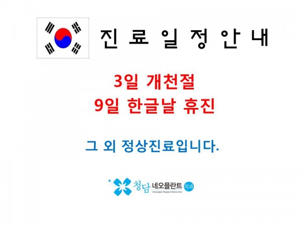 10월 휴진일정 및 진료일정 안내 페이지 정보 작성자 최고관리자 작성일 19-10-02 15:10 조회 3,179회 댓글0건 관련링크 이전글 청담네오플란트치과2020년 1월 진료일정안내 다음글 치과의원확장기념 목록 답변 본문 1644-8828 청담네오플란트치과 댓글 목록 등록된 댓글이 없습니다. 댓글등록 이전글 청담네오플란트치과2020년 1월 진료일정안내 다음글 치과의원확장기념 목록 답변
