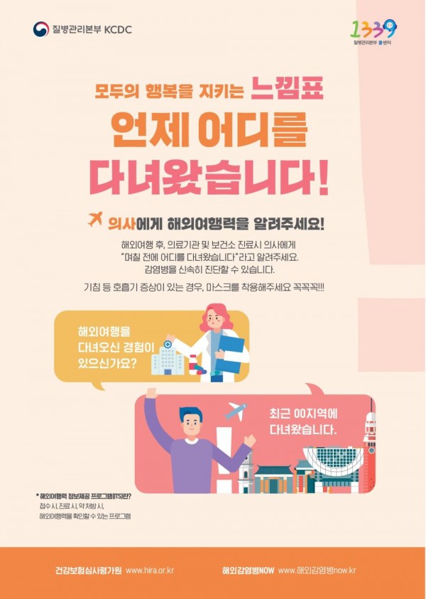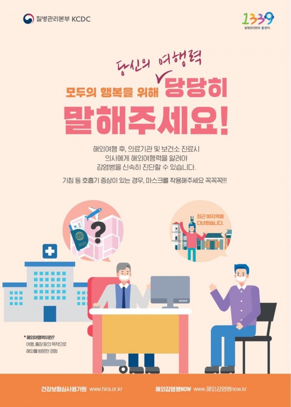 병원 내원시 해외 여행을 다녀오신 분은 접수시 반드시 해외여행력을 알려주세요